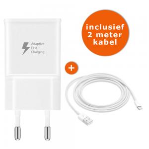 Deze extra krachtige oplader voor de Samsung Galaxy A50 wordt geleverd inclusief een extra lang snoer van 2 meter.